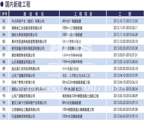- 煙囪新建宏順建設(shè)工程有限公司是一家專業(yè)從事煙囪新建,煙囪防腐,煙囪內(nèi)壁防腐,煙囪脫硫防腐,磚煙囪新建,水泥煙囪新建,鋼煙囪新建,水泥煙囪防腐,混凝土煙囪新建,煙囪拆除,煙囪維修,煙囪脫硫防腐等工程!咨詢熱線:13770071688。